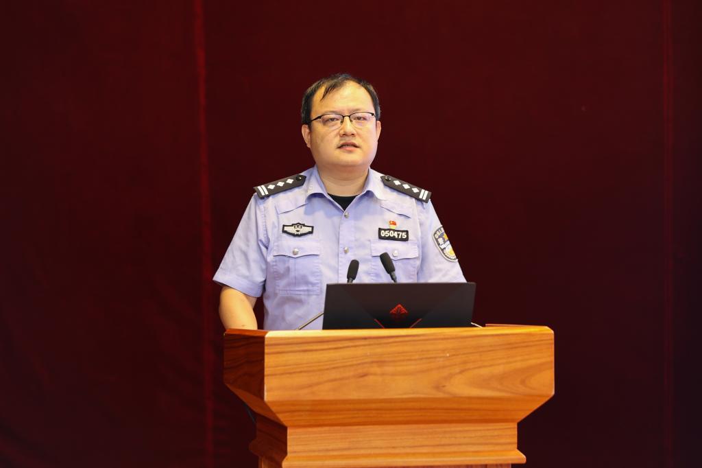 沙河派出所副所长陈喆静冈作“反诈小常识”主题报告