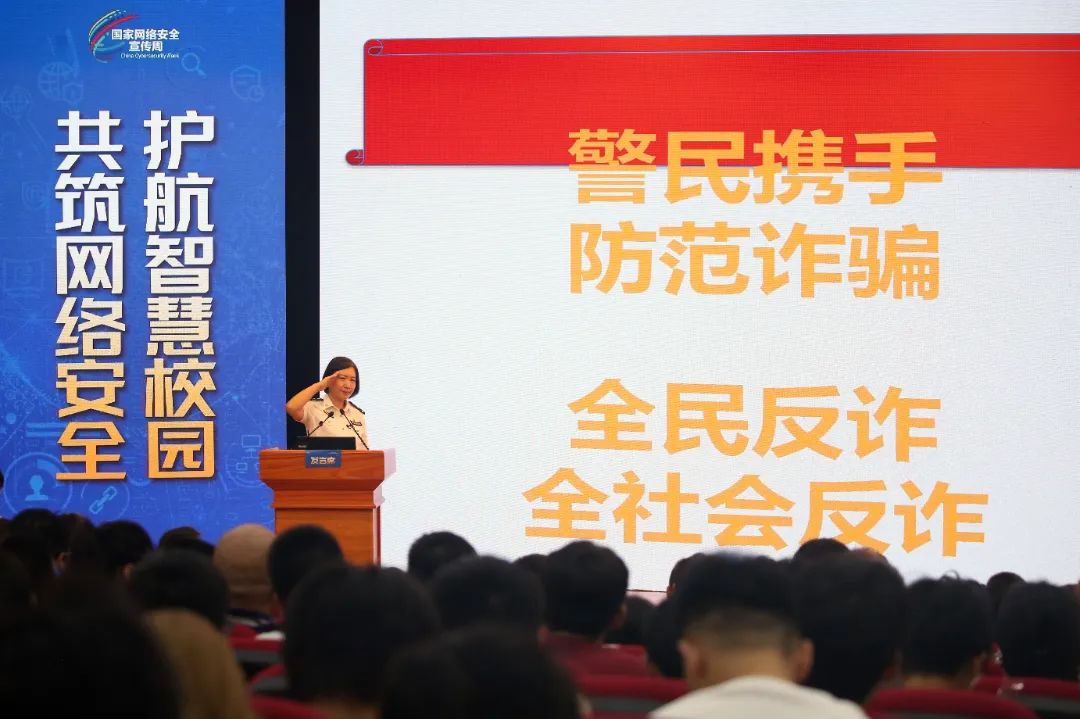 管理信息中心网络安全处处长杨伟平、市公安局刑侦总队警务技术二级主任赵炜分别围绕高校网络安全形势与对策、防范电信网络诈骗作主题演讲。