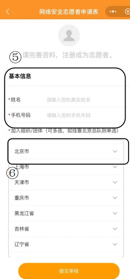 6.加入组织/团体选择北京市—北京网络安全协会志愿服务总队—68中国矿业大学(北京)网络安全志愿服务队