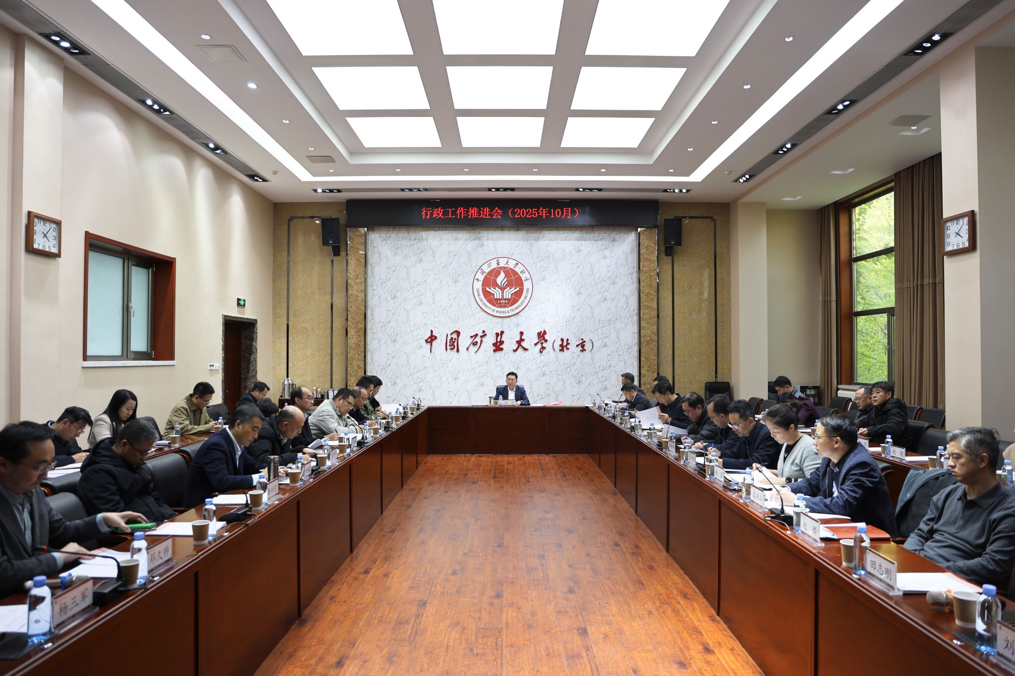 10月21日下午,学校在一号办公楼200会议室召开10月行政工作推进会。校长刘波,副校长崔希民、谭凯、汪文生,校长助理乔红兵、阳凡林出席会议,行政部门、教辅单位、教学科研单位负责人参加会议。会议由崔希民主持。