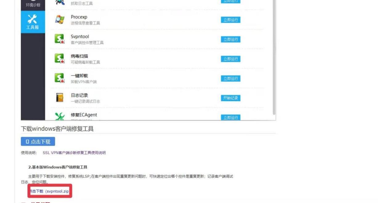 7、下载后使用解压工具进行解压缩,点击svpntool.zip,运行诊断修复工具。