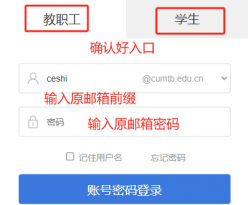 输入登录账号:原系统邮箱名(教师和学生选择对应自己的后缀的入口)